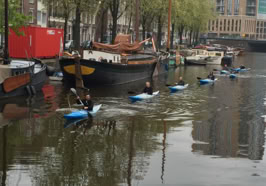 Canoe Rental The Hague is located in the heart of the city near the historic ship the 'St. Rafaël'. It is easy to get in and out via a floating landing stage which you will find at a five-minute walk from Den Haag Hollands Spoor train station or a ten-minute walk from Den Haag Central train station. In addition, several trams and buses stop nearby. Canoe Rental The Hague is also easily accessible by bicycle and car. Bicycles can be parked on the nearby Wagenbrug, paid parking applies for cars.